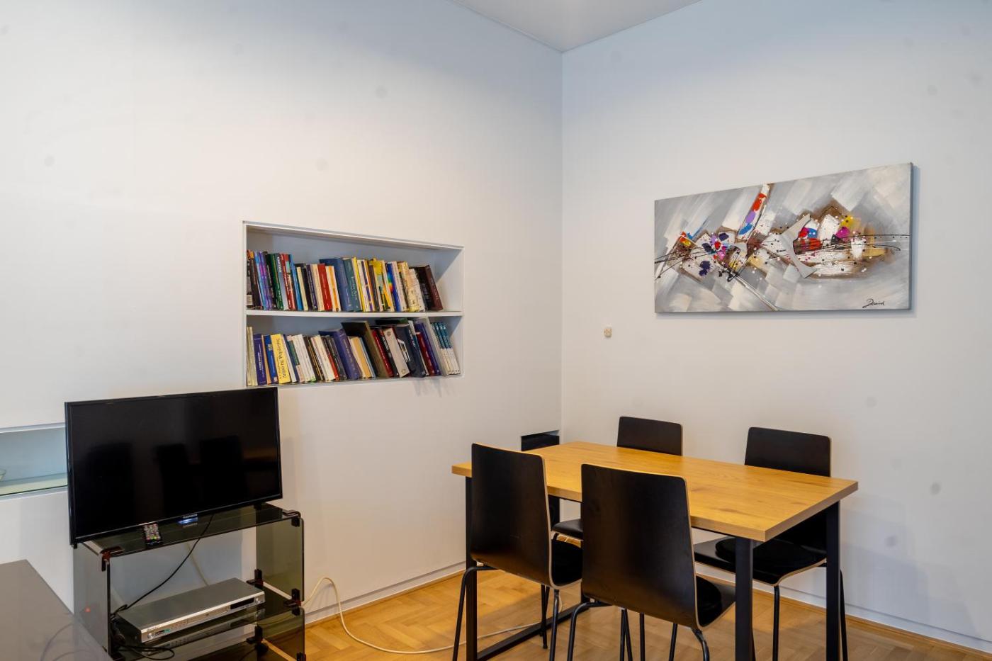 Apartment. The spacious apartment features 1 bedroom and 1 bathroom with a shower and free toiletries. The apartments kitchen, which has a stovetop and a refrigerator, is available for cooking and storing food. This air-conditioned apartment consists of a dining area, a flat-screen TV with streaming services a washing machine and a balcony. The unit offers 2 beds.