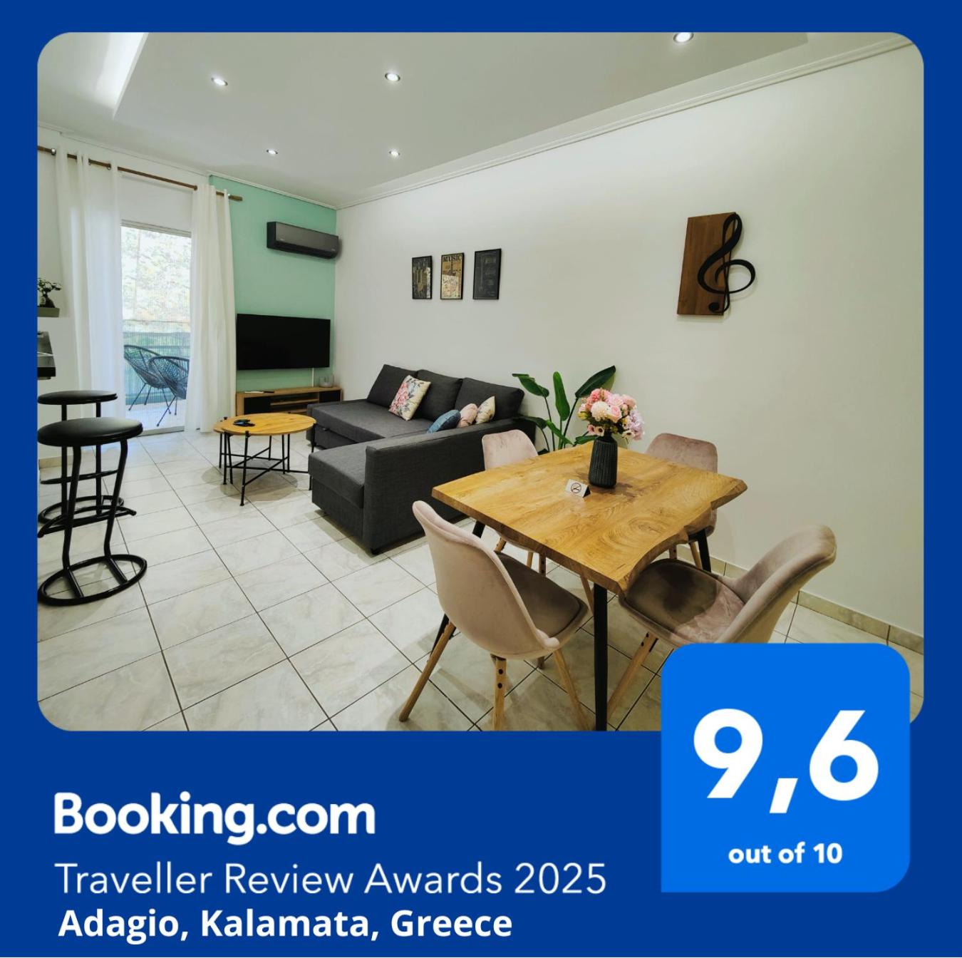 Set in Kalamata, 1.8 km from Kalamata Beach and 1.2 km from Municipal Railway Park of Kalamata, Adagio offers air-conditioned accommodation with a balcony and free WiFi. This recently renovated apartment is located 700 metres from Pantazopoulio Cultural Center and less than 1 km from Military Museum of Kalamata. Outdoor seating is also available at the apartment.